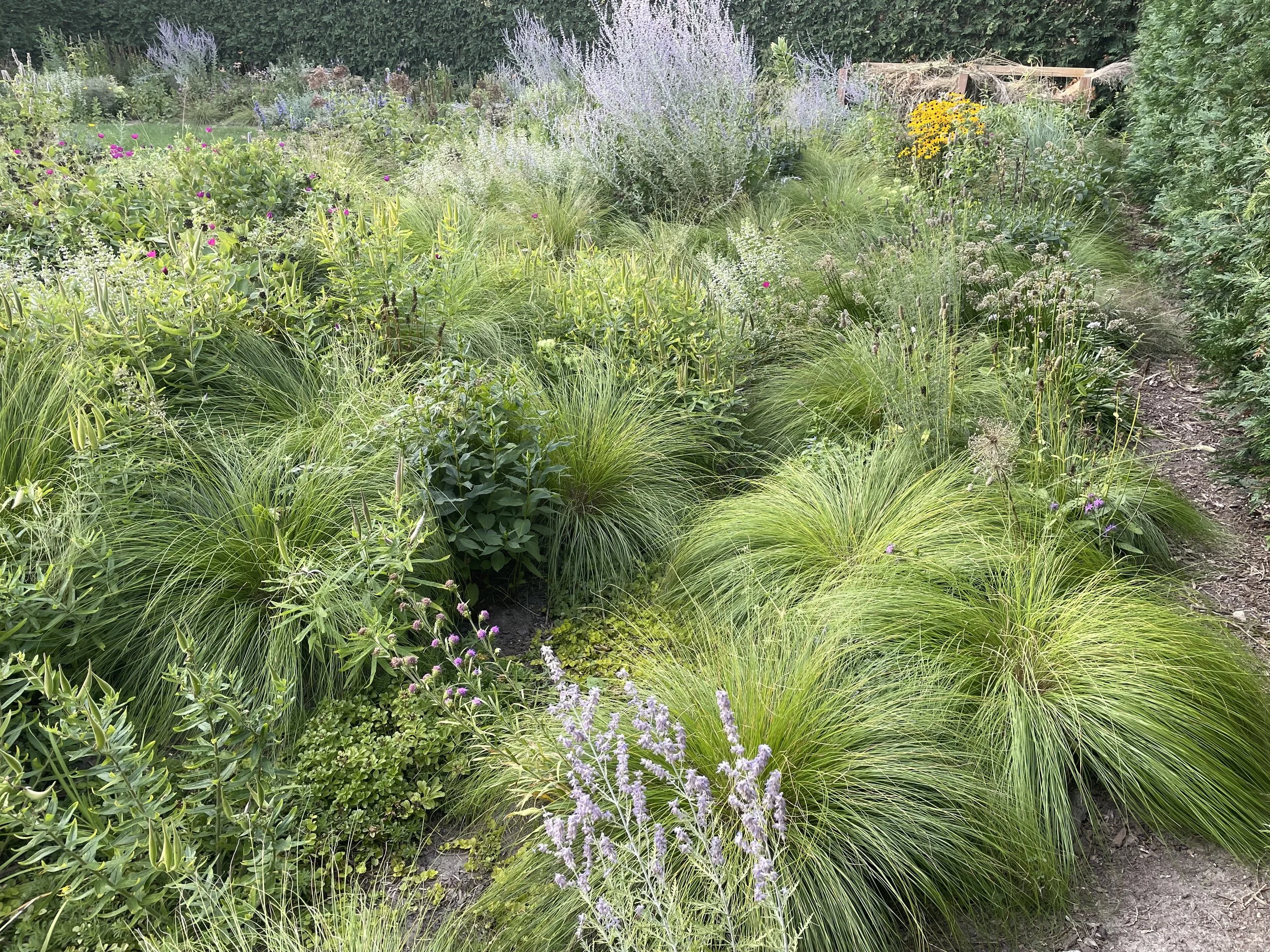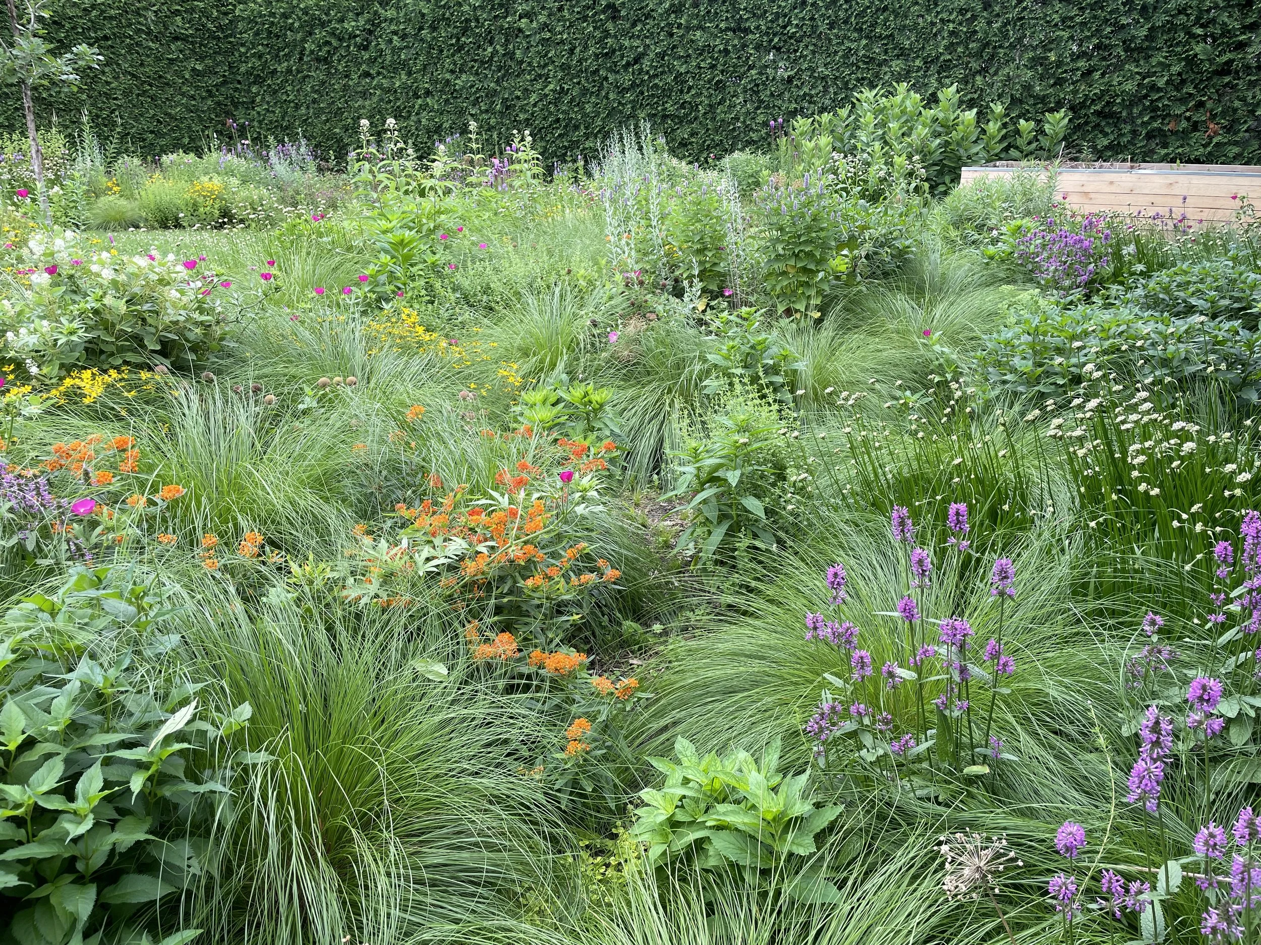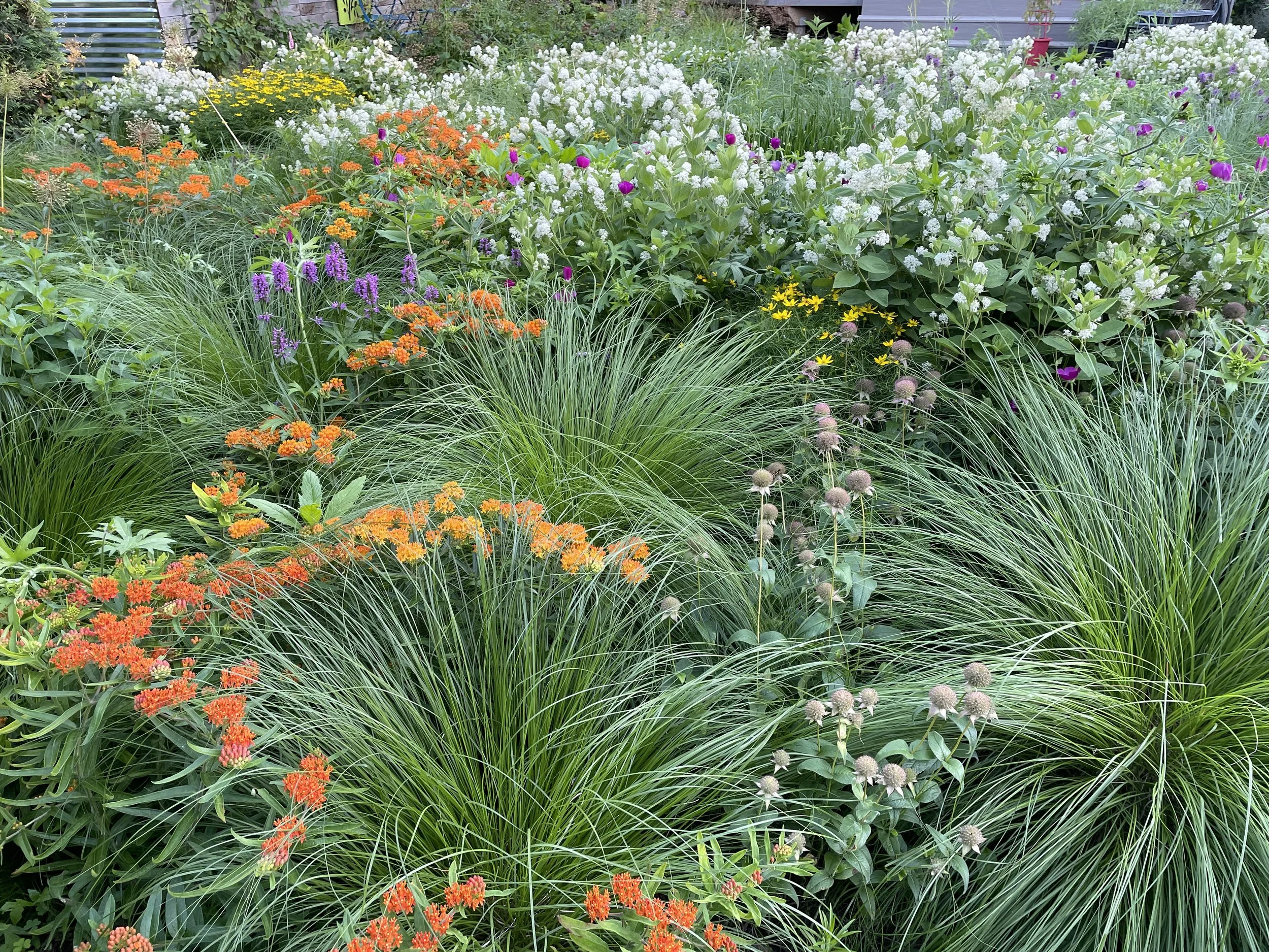 The pictures above focus on the east side of the garden as this is the most mature. The height of of interest in the meadow garden starts toward the end of June and goes to early August. Not that there isn’t interest during the other parts of the season but, at least for now, it is more subdued.