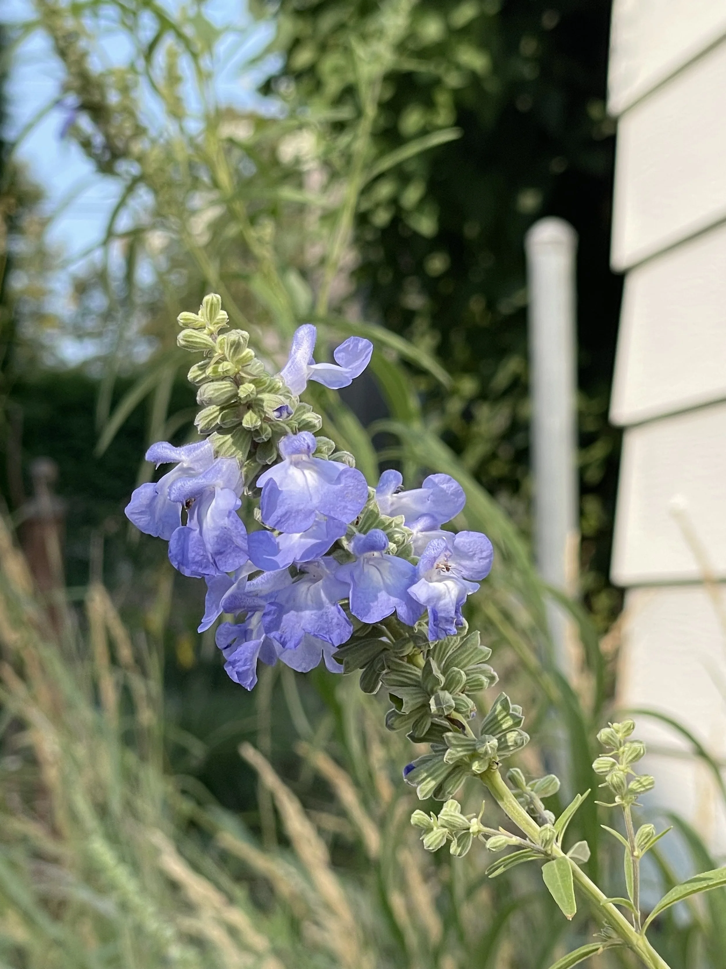 Middle: Blue Sage - Salvia azurea is a true light blue flower. Said to be on the edge of its cold hardiness zone here in southern Minnesota, it has survived two winters now along the west side of the house where it appreciates the western sun exposure.